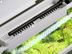 В комлпекте с аквариумом идет крышка со светодиодным освещением мощностью 8 Вт, фильтр с насосом 6 Вт и поддон. В крышке размещено отверстие для кормления рыбок, а также вентиляционная решетка. Растения и декорации в комплект не входят. Объем аквариума - 30 литров. Габариты: 42х23х31 см
