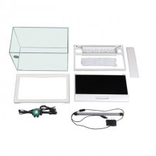 В комлпекте с аквариумом идет крышка со светодиодным освещением мощностью 8 Вт, фильтр с насосом 6 Вт и поддон. В крышке размещено отверстие для кормления рыбок, а также вентиляционная решетка. Растения и декорации в комплект не входят. Объем аквариума - 42,5 литров. Габариты: 50х25х34 см