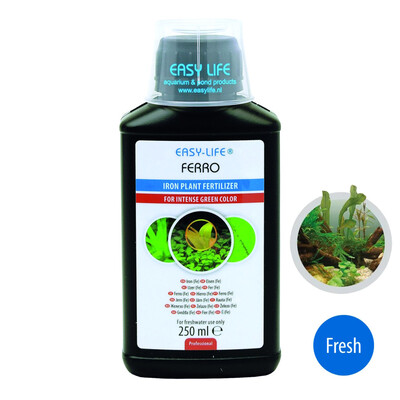 Easy-Life Ferro содержит легкоусвояемую форму железа, необходимого для оптимального роста аквариумных растений. Недостаток железа может привести к желтению листьев, известному как хлороз. Добавление Ferro помогает предотвратить этот недуг, особенно в аквариумах с быстрорастущими растениями.