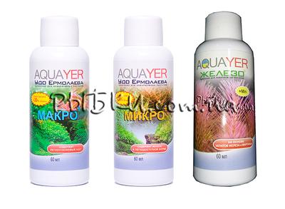 Набор удобрений для аквариумных растений Aquayer МАКРО+ МИКРО+ Железо 3х60мл