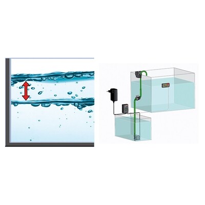 - Интеллектуальный контроллер со светодиодным индикатором регулирует автодолив. Он запоминает количество наполнения и таким образом адаптирует количество воды до размера аквариума.