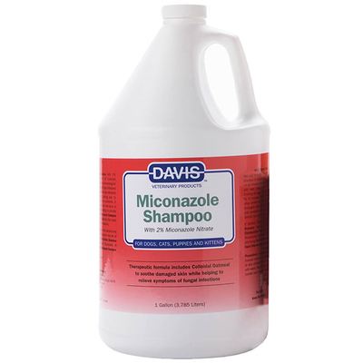 Davis Miconazole Shampoo – эффективный мягкий шампунь, который можно использовать для мытья собак, котов, щенков и котят в составе комплексной терапии при диагностировании у домашних питомцев заболеваний кожи, вызванных грибками. Помогает эффективно бороться со стригущим лишаем на любой стадии инфекции, устраняет шелушение, вызванное себореей.