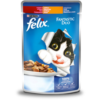 Felix Fantastic Duo пауч говядина и птица, кусочки в желе для котов, 100 г