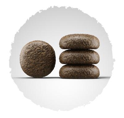 Состав: мясо домашней птицы, рис, жир домашней птицы, кукурузная мука, свекольная пульпа, мясо лосося 6,0%, крахмал картофельный, гидролизованный белок домашней птицы, куриная печень, сухие дрожжи; гемоглобин порошок, йодированная морская соль, порошок цикория, хлорид калия, мясо мидии