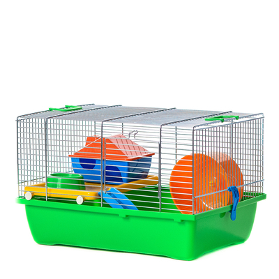 Комплектация: клетка, поддон, пластиковая полочка, домик, колесо, кормушка