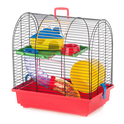 Клетка-переноска для грызунов Inter-zoo GRIM 2 чёрные прутья, пластиковые полочки, 36x24x38 см цвета в ассортименте