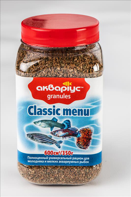 Корм для аквариумных рыбок Акваріус Классическое меню гранулы 600 мл, 350 г
