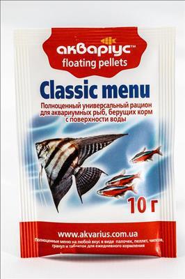 Корм для аквариумных рыбок Акваріус Классическое меню плавающие пеллеты 10 г
