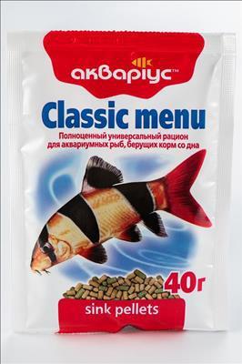 Корм для сомиков и других донных рыбок Акваріус Классическое меню тонущие пеллеты 40 г
