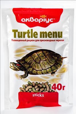 Корм "TURTLE MENU", sticks ("Меню для черепах", палочки) предназначен для ежедневного кормления всех видов взрослых пресноводных черепах: болотных, красноухих, триониксов и других.