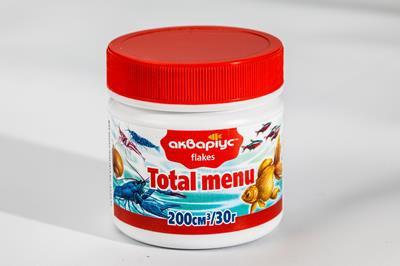 Корм для всех видов рыбок, улиток, креветок и раков Акваріус Тотал меню хлопья 200 мл (30 г)