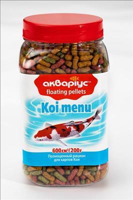 Корм для взрослых карпов КОИ Акваріус Меню для карпов Кои плавающие пеллеты 600 мл (200 г)