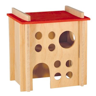 Деревянный домик для мелких грызунов будет уютным уголком для отдыха пушистых любимцев.