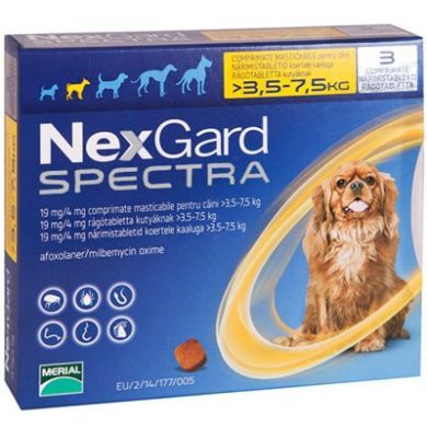Нексгард Спектра таблетки от блох, клещей и гельминтов для собак весом 3,5-7,5 кг (S) 3 таб