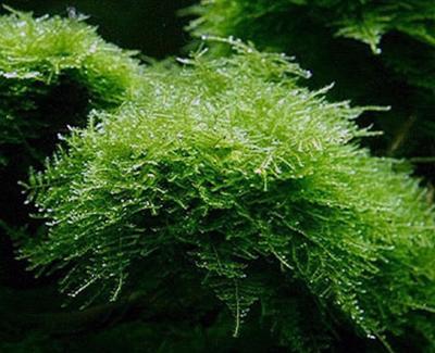 Это интереснейшее растение представляет собой переплетение нитевидных стеблей темно-зеленого цвета, которые прикрепляются к камням и корягам. Взрослые растения образуют очень красивые заросли, служащие убежищем для мальков и робких рыбок. Нежную зелень мха охотно поедают растительноядные рыбки.