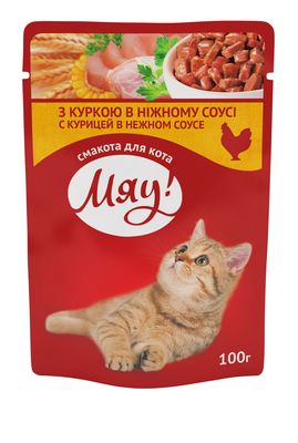 Мяу! влажный корм для котов, курица в нежном соусе, 100 г