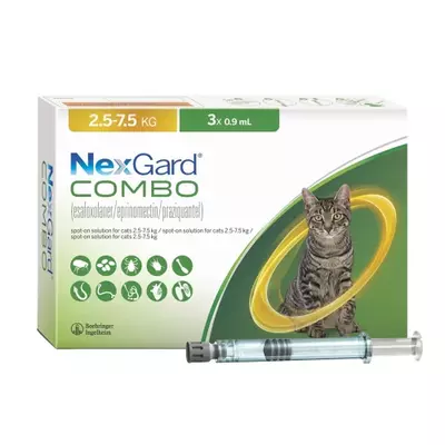 NexGard Combo предназначен для борьбы и профилактики блох, клещей (в том числе ушных) и гельминтов у кошек. Препарат удобен тем, что одновременно воздействует на 23! видов кошачьих паразитов. Его рекомендуют применять, когда животное страдает одновременно от внешних и внутренних паразитов или есть обоснованное подозрение такой проблемы.