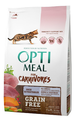 Optimeal беззерновой сухой корм для взрослых котов, утка и овощи, 4 кг