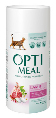Optimeal для взрослых кошек с чувствительным пищеварением, ягненок - суперпремиальное питание для взрослых кошек, изготовленное под контролем ветеринаров.