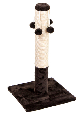 Дряпка в виде подставки из плюша и столбика с сизалевой нитью и игрушками - бубенчиками на веревке. Размеры: 36х36х67 см