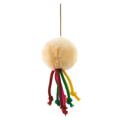 Мягкий мячик изготовленный из искуственного меха понравится котам разного возраста. С такой игрушкой вы можете развлекать любимца, а если нет свободного времени - подвесить игрушку на надежную опору и котик будет с удовольствием сам играться с ним. Шнурочки с узелками делают игрушку еще более интересной