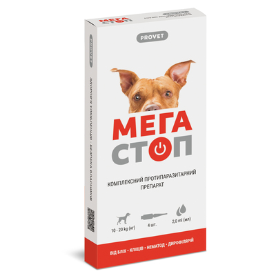 ProVET Мега Стоп комплексный антипаразитарный препарат для собак 10-20 кг, 1 шт по 2 мл