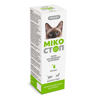 Лікування котів і собак з трихофітією, мікроспорією, бактеріальним дерматитом, а також при ураженні дріжджовими грибами (роду Candida Rhodotorula).