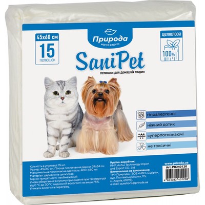 Пеленки из нетканного полотна ТМ «Природа» прекрасно впитывают жидкость и запахи, понадобятся как хозяевам щенков, так и взрослых собак.