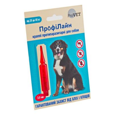 «ПрофиЛайн» имеет удобную форму выпуска спот-он (капли на холку), а также практичную дозировку препарата для собак весом 20-40 кг. «ПрофиЛайн» назначают с профилактической и лечебной целью при заражении внешними паразитами: блохами (Ctenocephalides spp.), вшами (Linognathus spp.), власоедами (Trichodectes canis, Felicola subrostratus) и паразитоформный клещами (Rhipicephalus spp., Dermacentor spp., Ixodes spp.).
