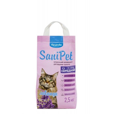 Природа SaniPet средний, с лавандой - бентонитовый наполнитель для туалетов, 2,5 кг