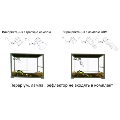 Светильник позволяет включать лампу мощностью до 150 Вт. В комплекте идет универсальное крепление, которое подойдет для установки практически в любых террариумах.