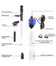 Электрический сифон Sunsun HXS 02 для очистки грунта в аквариумах, оснащенный электронасосом для быстрой откачки воды из аквариума. Производительность насоса 800 литров в час. Благодаря электронасосу очистка почвы превращается в простую и быструю манипуляцию и не доставляет дискомфорта.Сифон состоит из телескопической трубки, максимальная длина которой с патрубком составляет 79 см, минимальная 50 см. На телескопическую трубу надеваются разные насадки для очистки разных видов грунта от крупной фракции до самой мелкой (песок).