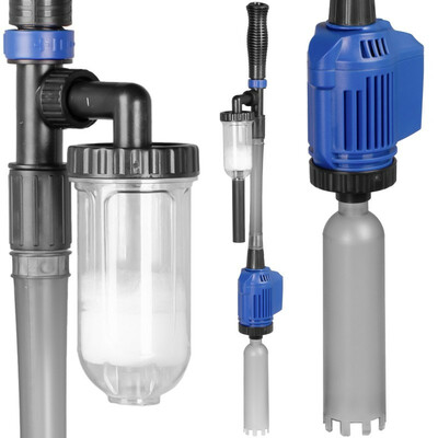 Kruger Meier FlowVac Pro — это многофункциональное устройство 4-в-1, которое значительно упрощает уход за аквариумом. Оно сочетает в себе функции отсасывания ила, фильтрации, чистки и подмены воды, позволяя выполнять все эти задачи быстро, аккуратно и без использования батареек.