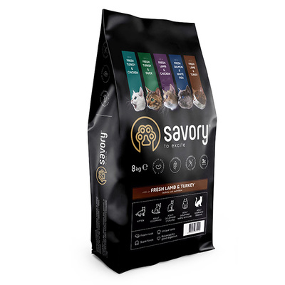 Сухой корм Savory для кошек с чувствительным пищеварением со свежим мясом ягненка и индейки 8 кг