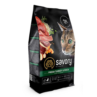 Сухой корм Savory для кошек со свежим мясом индейки и уткой, 400 г