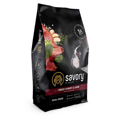 Сухой корм Savory для собак малых пород со свежим мясом индейки и ягнятиной 8 кг