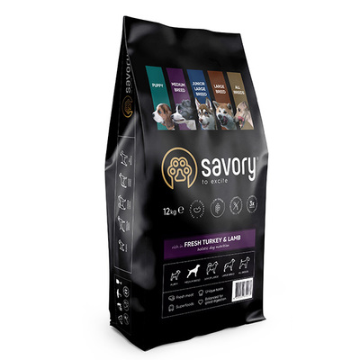 Сухой корм Savory для собак средних пород со свежим мясом индейки и ягненка 12 кг