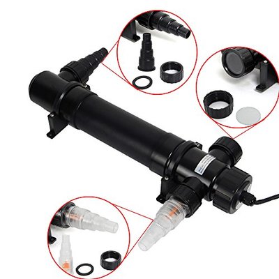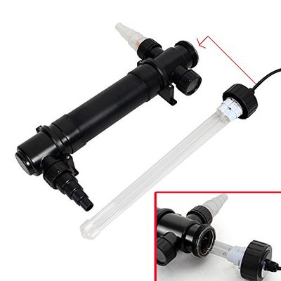 UVC лампа. Стерилизатор подключается к фильтру, который прогоняет уже очищенную механическим путем воду через колбу стерилизатора вокруг лампы.Стерилизатор для пруда
