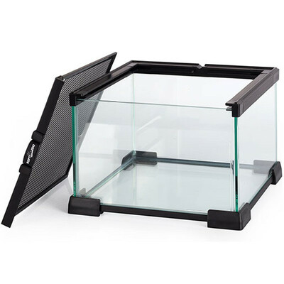 Компактный террариум серии AK с полностью водонепроницаемым дном и верхней вентиляционной сеткой из стали. Сетка обеспечивает оптимальную циркуляцию воздуха и позволяет устанавливать лампы отопления и УФ-освещение. Верхняя крышка снабжена лючком для кормления и легко снимается для ухода за животными.