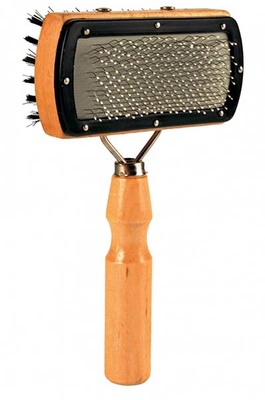 Удобная двухсторонняя щетка для бережного ухода за основной шерстью и подшерстком у собак с курчавой, длинной, обычной или жесткой шерстью.