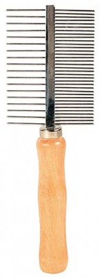 Длина - 17 см, удобная деревянная ручка. Расческа с метталическими средними и редкими зубьями.