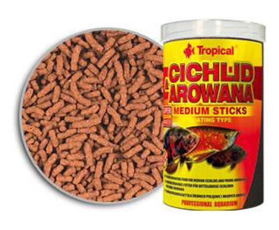 Tropical Cichlid & Arowana Medium Sticks - многокомпонентный окрашивающий корм в виде плавающих палочек, предназначенный для ежедневного кормления цихлид среднего размера, молодых арован и других видов всеядных и плотоядных рыб среднего размера.