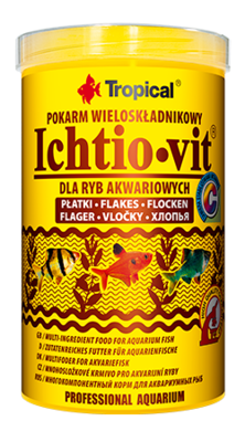 Tropical IchtioVit - многокомпонентный корм в виде хлопьев, полученный из высококачественных, отборных, компонентов животного и растительного происхождения.