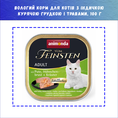 Влажный корм Animonda Vom Feinsten Adult Turkey, Chicken breast and Herbs с индейкой, куриной грудкой и травами для кошек, 100 г