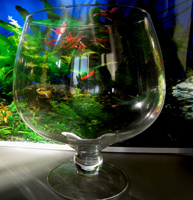 Акваріум - бокал об'ємом 4 літри. Підходить для утримання кількох невеликих рибок.