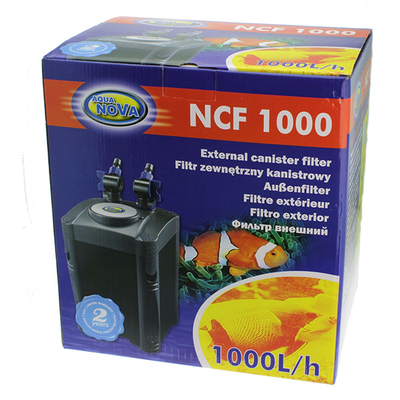 Зовнішній фільтр Aqua Nova NCF-1000 для акваріумів до 300 літрів продуктивністю 1000л/год має дві фільтрувальні корзини. Він постачається в комплекті з усіма наповнювачами, шлангами, трубками і повністю готовий до використання. Об’єм каністри 8,7л.