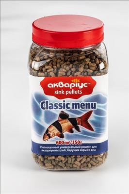 Корм для сомиків та інших донних рибок Акваріус Класичне меню тонучі пелети 600 мл (350 г)