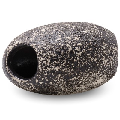 Керамічна прикраса акваріума нагадує обкатаний морськими хвилями камінь, тому вона органічно вписується в будь-який стиль оформлення акваріума. Також цей декоративний елемент може слугувати укриттям для невеликих риб. Два округлі отвори з ідеально обробленими краями дозволяють рибкам запливати всередину каменя.
