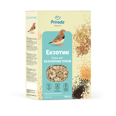 Рецептура корму «Екзотик» розроблена на основі рекомендацій провідних фахівців з розведення декоративних птахів.