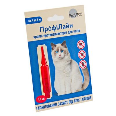 «ПрофіЛайн» має зручну форму випуску спот-он (краплі на холку), а також практичне дозування препарату для котів вагою 4-8 кг. «ПрофіЛайн» призначають з профілактичною та лікувальною метою при зараженні зовнішніми паразитами: блохами (Ctenocephalides spp.), вошами (Linognathus spp.), власоїдами (Trichodectes canis, Felicola subrostratus) та паразитоформними кліщами (Rhipicephalus spp., Dermacentor spp., Ixodes spp.).